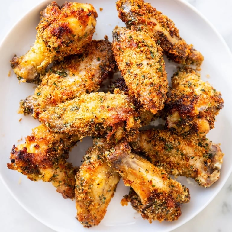 Pin it My cousin showed up to a Super Bowl party with these wings, and I'll admit I was skeptical—baked, not fried, seemed like it couldn't possibly work. But one bite and I understood why she'd been making them for years. That golden, crispy crust with the salty Parmesan hitting first, then the herb flavors blooming underneath—it caught me completely off guard. Now I make them whenever I need something that feels impressive but won't keep me stressed in the kitchen.
