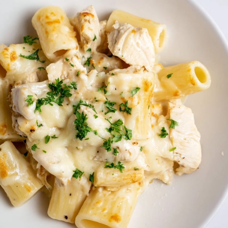 Pin it There's something about a bubbling casserole fresh from the oven that stops everyone mid-conversation. My mom used to make a version of this on rainy Sundays, and I'd hover near the kitchen door just to catch the smell of butter and cream mingling with melting cheese. Years later, I realized I was actually craving the memory of her standing at the stove, whisking away, completely absorbed in the task. This Chicken Alfredo Bake became my way of recreating that same magic, except now I'm the one holding the whisk and filling my own kitchen with that unforgettable aroma.