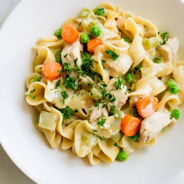 Pin it This creamy chicken and noodle dish has fed more people in my kitchen than almost any other recipe, and that's not because it's fancy—it's because it's honest. It reminds you why comfort food exists.