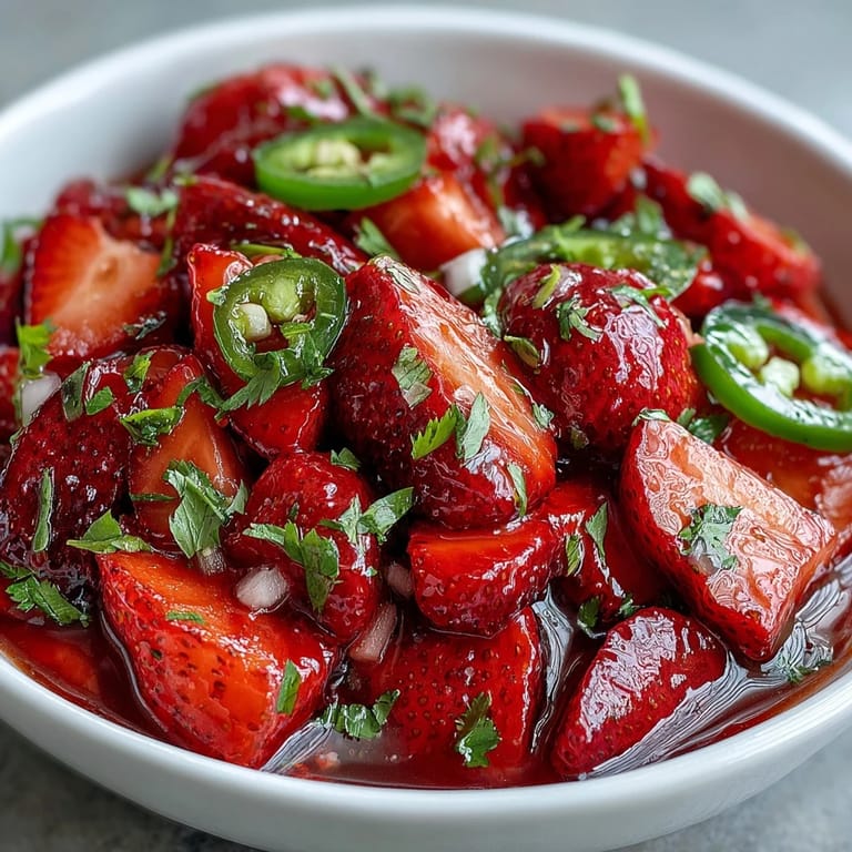 Pin it My neighbor knocked on my back door one summer afternoon with a bag of strawberries so ripe they seemed to glow, asking if I knew what to do with them beyond jam. I'd been staring at fish tacos for dinner, and something clicked—what if strawberries could be savory? That first batch was chaotic, a little too much onion, not enough lime, but the moment the flavors landed, everything changed. Now this salsa shows up at every gathering, and people always ask for the recipe with genuine surprise that fruit could taste so alive.