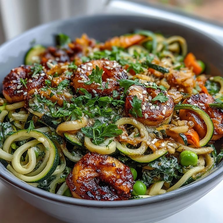 Pin it There's something oddly satisfying about the moment a spiralizer transforms a plain zucchini into delicate green ribbons—like watching something ordinary become something almost magical in your hands. I discovered this stir fry on a summer afternoon when my fridge was overflowing with vegetables and I was determined not to waste a single one. The whole thing came together in less time than it takes to order takeout, and somehow tasted fresher and more vibrant than anything I could have picked up. My partner walked in halfway through cooking, drawn by the aroma of ginger and garlic hitting hot oil, and we ended up eating straight from the wok while standing at the kitchen counter.