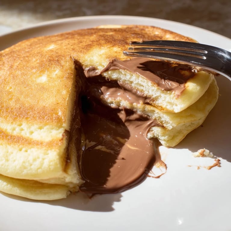 Pin it There's something about the moment when a knife cuts through a warm pancake and that ribbon of melted Nutella spills out—it feels like you've just pulled off a small kitchen magic trick. My sister called me one Sunday morning asking if I could make something special for her kids' breakfast, something that would make them actually want to sit down and eat together. That's when I thought about hiding that hazelnut chocolate center inside fluffy pancakes, and watching their faces when they discovered it was absolutely worth the extra effort.