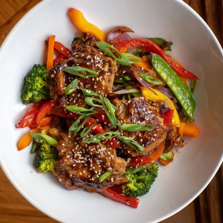Pin it A vibrant, quick-cooking one-pan meal featuring tender chicken and crisp vegetables tossed in a savory stir-fry sauce—ready in less time than delivery.