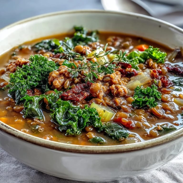 Lentil soups can sometimes feel heavy or one-note, but the spicy sausage brings a sharp, meaty punch that keeps things interesting, while the smoked paprika adds a whisper of depth that makes people pause and really taste what's happening in their bowl. The kale isn't just there for nutrition either—it wilts into the broth and adds an earthy bitterness that balances the tomatoes and sausage perfectly. Every spoonful feels hearty without being overwhelming, which is honestly the hardest balance to strike in a soup.
