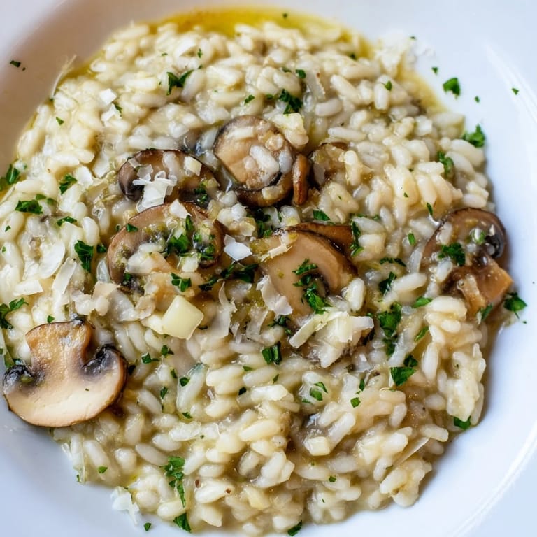 To make this risotto vegan, replace butter with plant-based alternatives and use vegan Parmesan or nutritional yeast for a cheesy flavor. You can enhance the dish's aroma by adding a splash of truffle oil before serving. For mushroom lovers, combining both mushrooms and Parmesan creates a deeply savory profile.