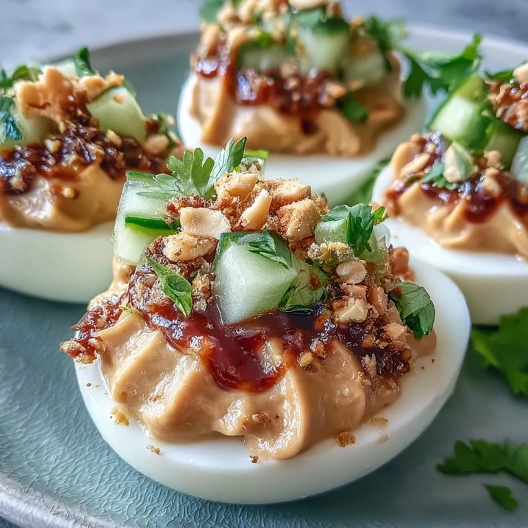 Pin it There was one afternoon when these eggs stopped being just an appetizer and became the thing my friends requested for potlucks. Someone held up an empty platter, looking betrayed that I hadn't made a double batch. It was that simple—Thai peanut deviled eggs moved from test run to tradition.