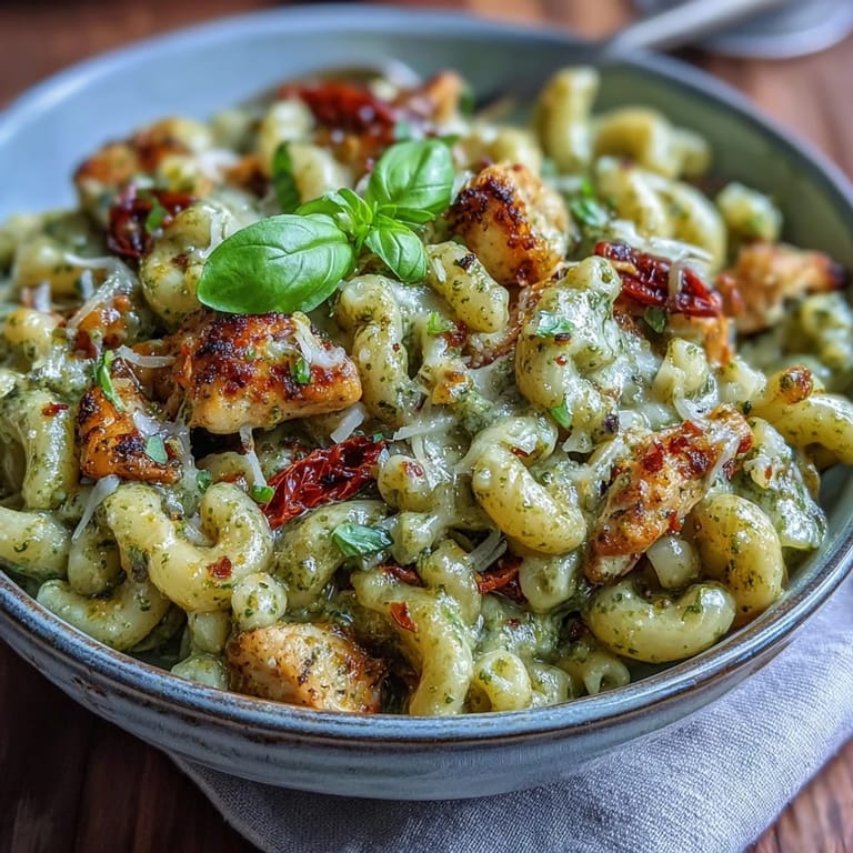 Chili mac is built on comfort, but pesto brings sophistication—fresh basil, garlic, and that olive oil richness elevate the dish into something unexpected. The sun-dried tomatoes add a concentrated sweetness that balances the herb's earthiness, while the two cheeses create layers of flavor rather than just one cheesy note. What makes it truly work is that nothing overpowers anything else; each element gets its moment without bullying the others off the plate.
