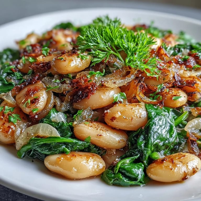 Pin it I discovered this skillet on a Tuesday night when my fridge felt emptier than it actually was. Two cans of beans, a handful of wilting spinach, and a lemon that'd been sitting there longer than I'd like to admit. Twenty-five minutes later, something magical happened—creamy, garlicky, bright enough to make you close your eyes on the first bite. It's become my go-to when I need dinner that feels intentional but doesn't require a grocery run.