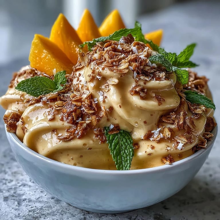 - Scoop your frozen mango creation into bowls, pile on that toasted oat mixture generously, arrange fresh mango slices on top, and scatter mint leaves if you want to feel fancy. Eat it immediately while the contrast between frozen and crunchy is still shocking and perfect.